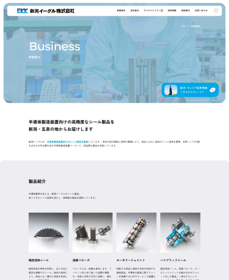 - 世界の半導体を支えるシール製造を行う、新潟イーグル株式会社様のコーポレートサイトです。新潟イーグル株式会社様では半導体製造装置向けのメカニカルシールに特化した事業を展開しています。イーグル工業グループの一員として、半導体業界向けシール製品の製造・販売、メンテナンスを行っています。