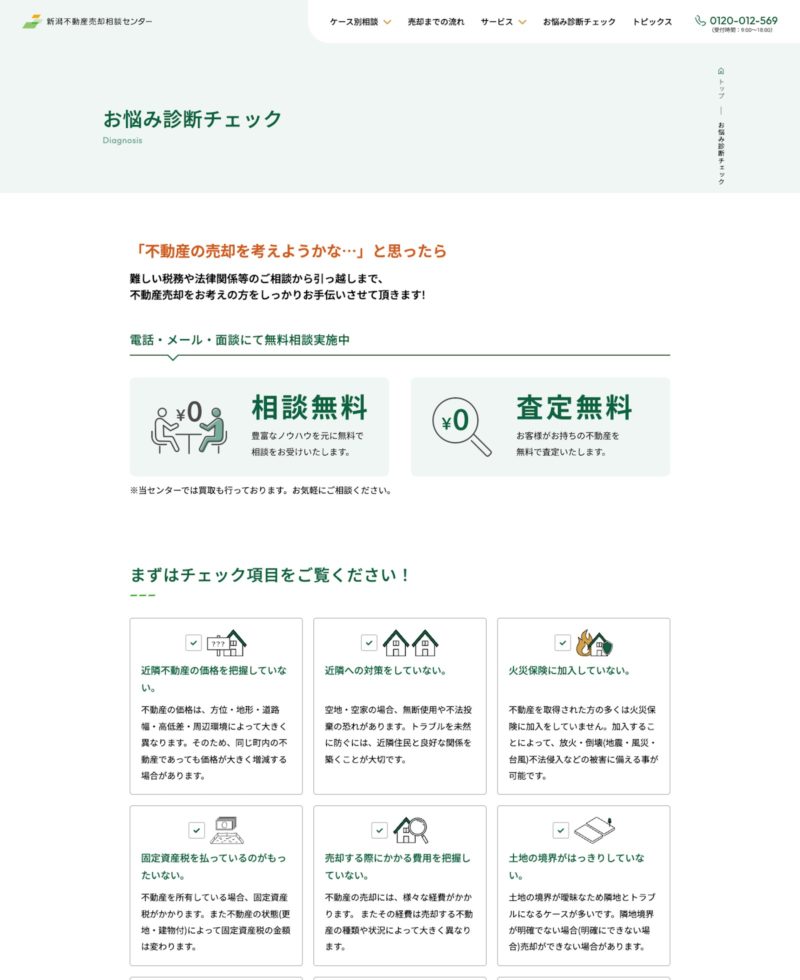 ドコドアで2回目のリニューアルとなる新潟不動産売却相談センター様。古い印象を与えていたサイトのデザインを一新するためご依頼いただきました。デザインリニューアルと同時にコンテンツも見直し、最新の情報に更新。不動産売却で悩んでいる方々にとって「必要な情報は何か」を突き詰めて考え、単なるSEO対策だけでなく訪れたユーザーのことを第一に考えたサイトになるよう制作いたしました。