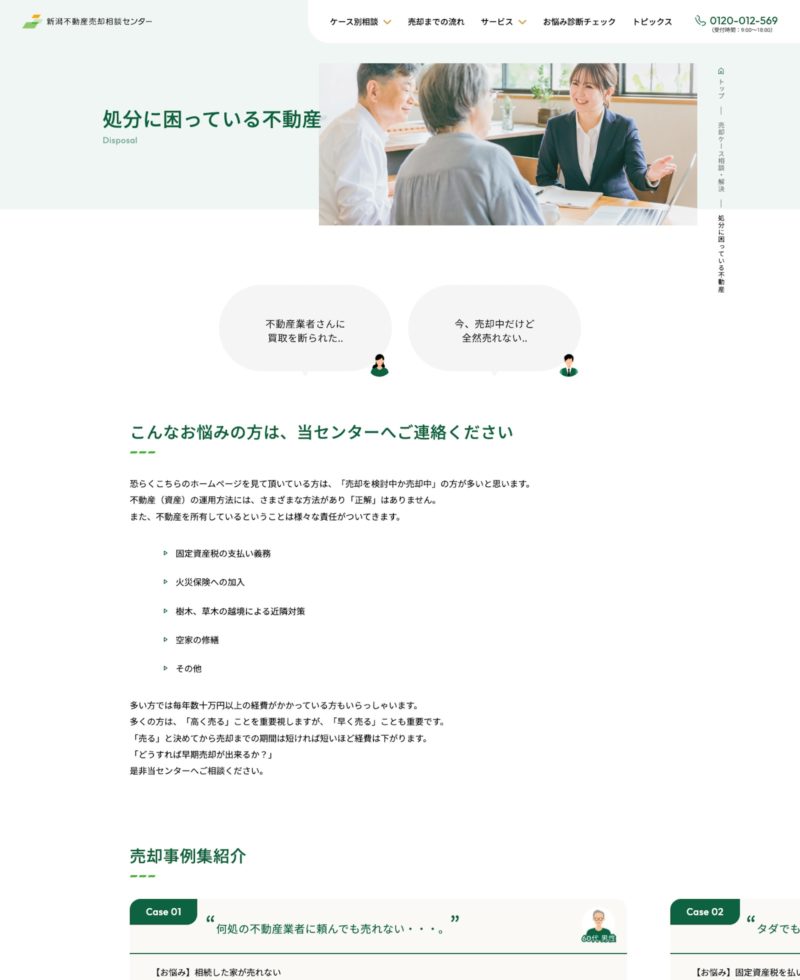新潟での不動産売却を安心して相談できる印象を重視し、落ち着いた色調と余白を活かした読みやすいレイアウトを採用しました。 トップには「買取」「仲介」など主要サービスをわかりやすく分類し、目的に応じてスムーズに遷移できる構造を構築。豊富な実績や専門資格保有スタッフの情報を視覚的に配置し、信頼感を感じさせます。 また、売却の流れやQ&Aを段階的に掲載し、初めての方でも理解しやすい導線を設計。スマートフォン閲覧にも最適化し、地域のユーザーに寄り添う利便性と安心感を両立したデザインとしました。