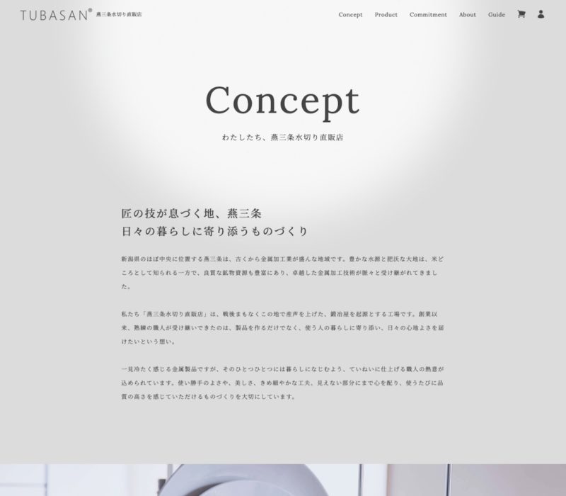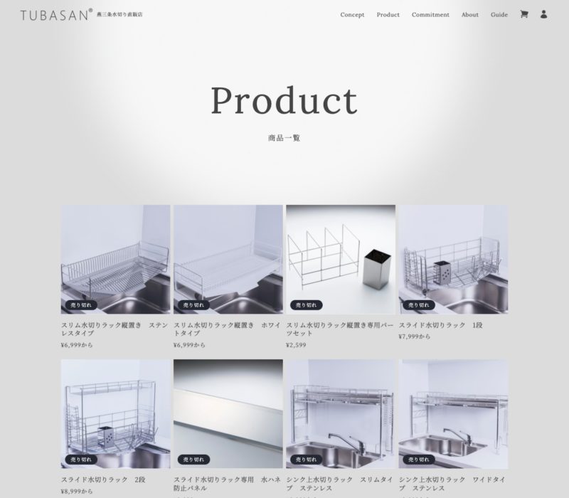 もともと楽天などのモールに「燕三条水切り直販店」として出店していた有限会社サトウ製作所様でしたが、自社のECサイトをつくりたいとのことでお問い合わせいただきました。自社のECサイトをつくる目的としては、ブランドイメージの確立と訴求。このためモールのショップのデザインとは差別化し、ブランドの世界観を全面に打ち出したつくりにしています。構築には基幹システムとの連携や今後のマーケティング施策を踏まえ、shopifyを利用しています。