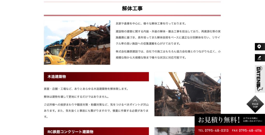 「親近感」を打ち出した解体業のホームページ