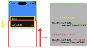 Positioned(bottom: -80)で無理やり移動させたWidgetは、見た目とhitTest領域が一致しなくなる場合があります。結果として、カード全体がタップできなくなります。例えば、次のような実装を行った場合