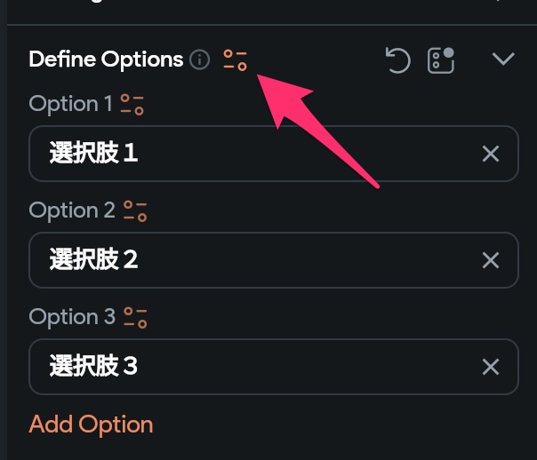 固定で「選択肢1、2,3」という項目になっている部分を調整します。
