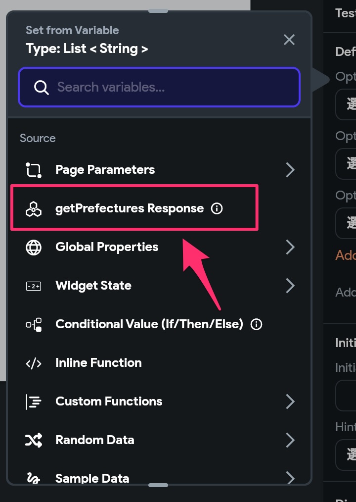 APIコールのレスポンス内容を元に動的にドロップダウン項目を構成する方法です。