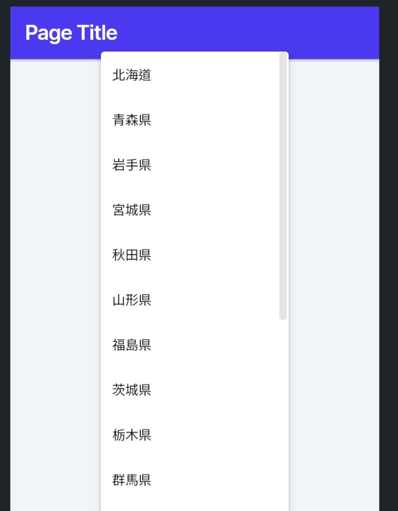 「APIで取得したデータ(都道府県のidとnameのリスト)を参照させ、都道府県データの name (都道府県名のテキスト)をドップダウン項目に設定する」