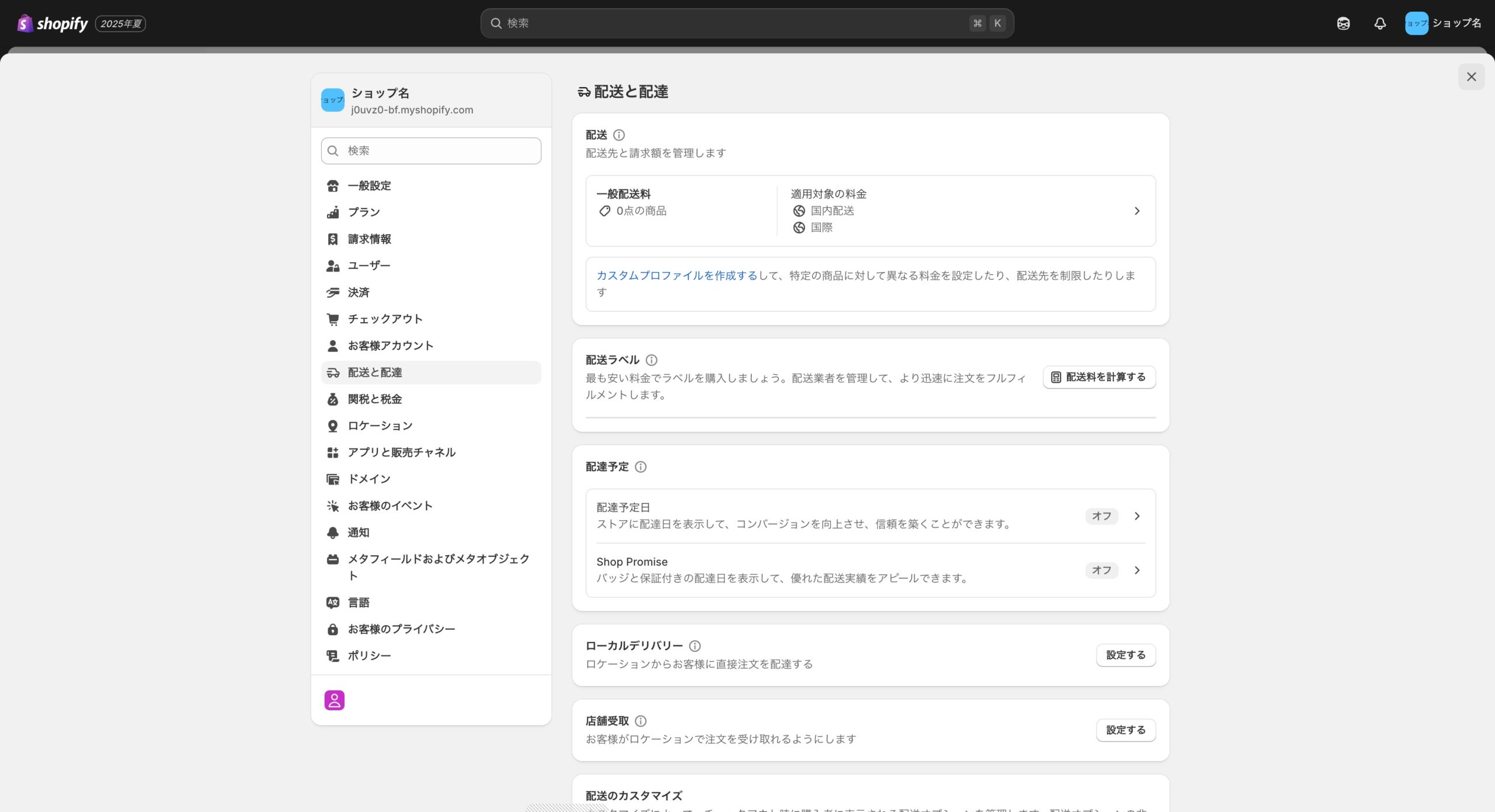 「設定」>「配送と配達」から配送に関する設定を行うことができます。