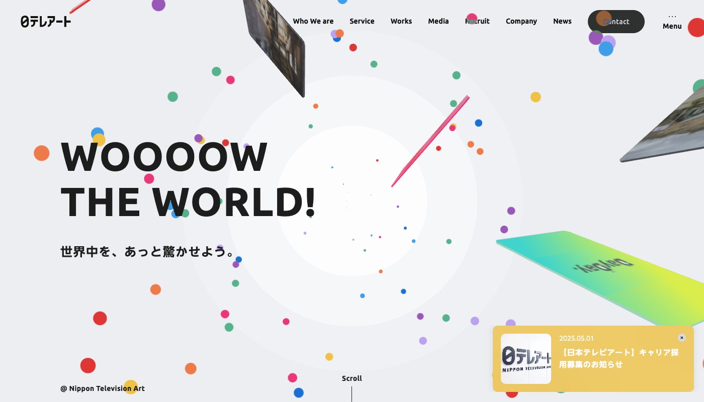 マウスオーバーやスクロールでパララックス表現を取り入れた3Dアニメーションが印象的なサイトです。会社のサービスやキャッチコピーに合わせたアニメーションを採用することで、何をしている会社なのかをわかりやすく表現しています。