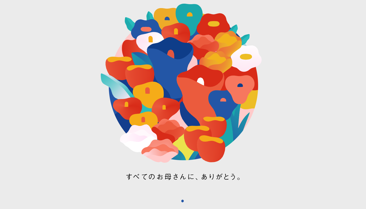 母の日の花束をイメージした3Dモデルがスムーズに動くキービジュアルが印象的なサイトです。スクロールでコンテンツを読み進めることができ、メッセージを印象的に伝えることができます。