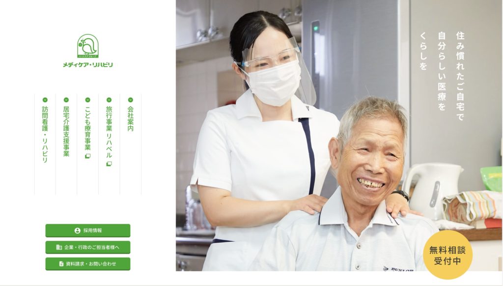 こちらは、クリニックを母体に、福祉施設や介護サービス、訪問看護サービスなどを展開しているグループ企業のホームページです。